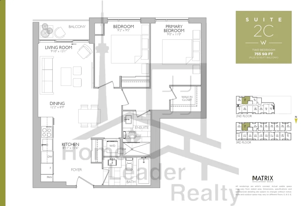 Suite 2C 2 Bed , 2 Bath 755 SQFT South