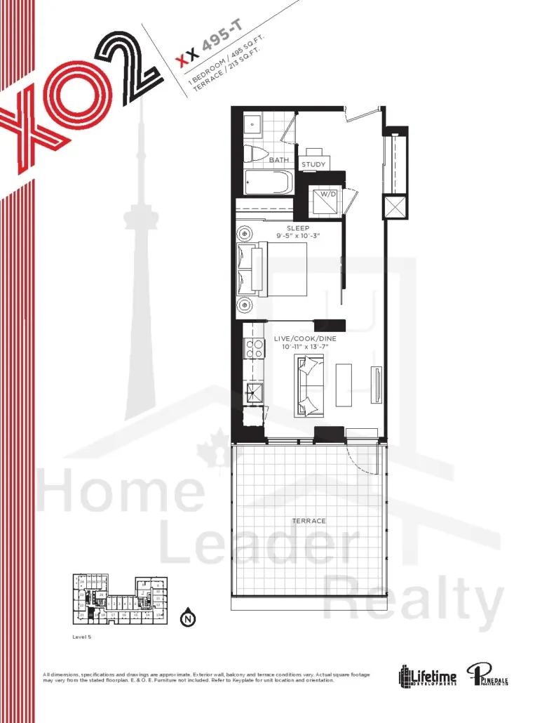 XX 495-T 1 Bed , 1 Bath 495 SQFT South