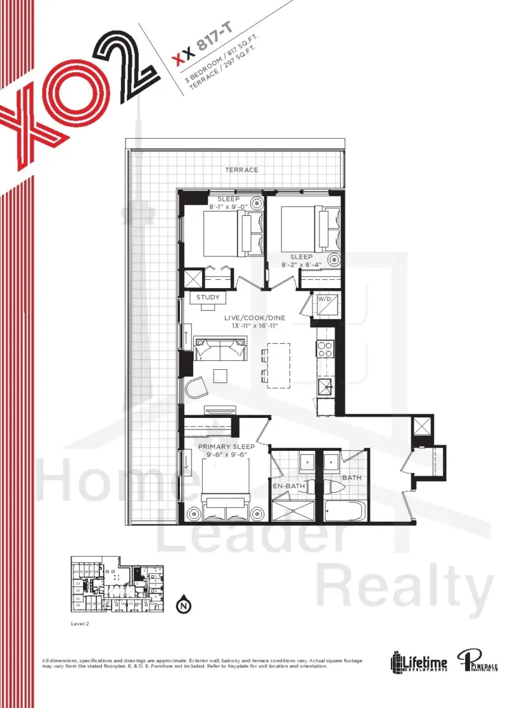 XX 817-T 3 Bed , 2 Bath 817 SQFT North