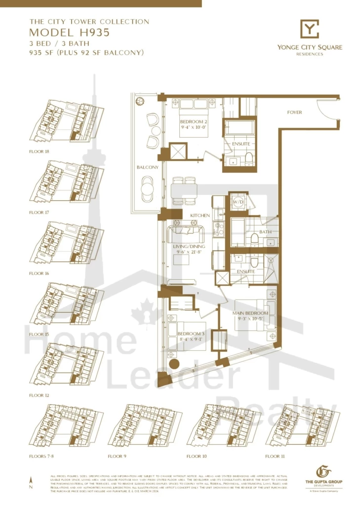 | available   | H935 City Tower Collection | 3 Bed , 3 Bath | 935 SQFT | South West |